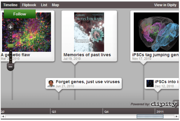 Ed Yong has a neat example on his NotExactlyRocketScience blog, of the timeline of reprogrammed (induced pluripotent) stem cell research: