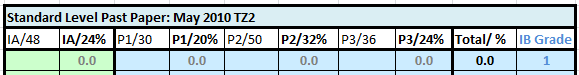To help with exam prep, this exam tracker (Excel 97-2003, Excel 2007-10) is set up for easy administration of exam practice, with papers and IA weighted appropriately. Simply plug in the students’ scores on each paper and it will produce a percentage total as well as the IB grade (1-7).